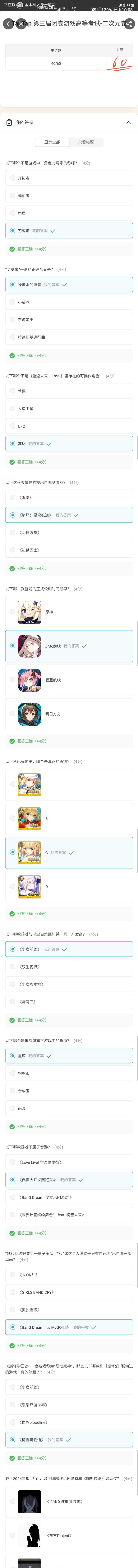 相信大家都尝试过今年的TapTap游戏高考了吧,都做了多少分呢,有及格吗,没有也不要紧,说明还需要尝试更多的游戏,丰富游戏阅历,分享一下我的成绩那么在这么多题目里,有哪些有趣的小知识呢,我来带大家简单盘点一下吧单选题Meta-game,直译为元游戏。Meta作为一种表现手法在影视作品中比较常见,主要表现为人物跳脱出作品框架本身,直接与观众对话。比较出名的例子包括漫威(Marvel)公司旗下的