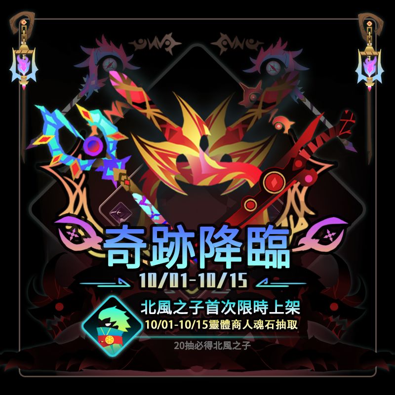 4. 北風之子限時活動抽取!在10月1日到10月15日的活動時間內在靈體商人魂石抽取處可以獲得,且每20抽必定保底獲得一只北風之子