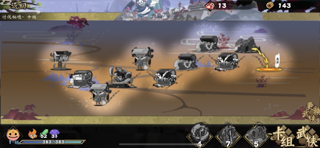 3、第三步:选择遗忘泉删除多余的1张铁布衫,选择山洞升级1张缥缈身法,其余的选择获取装备和商店,尽可能的去获得修真套或魂缠套,其他还是看个人习惯。个人感觉我这套打法对秘境路径选择的依赖也不大。(自带成型)