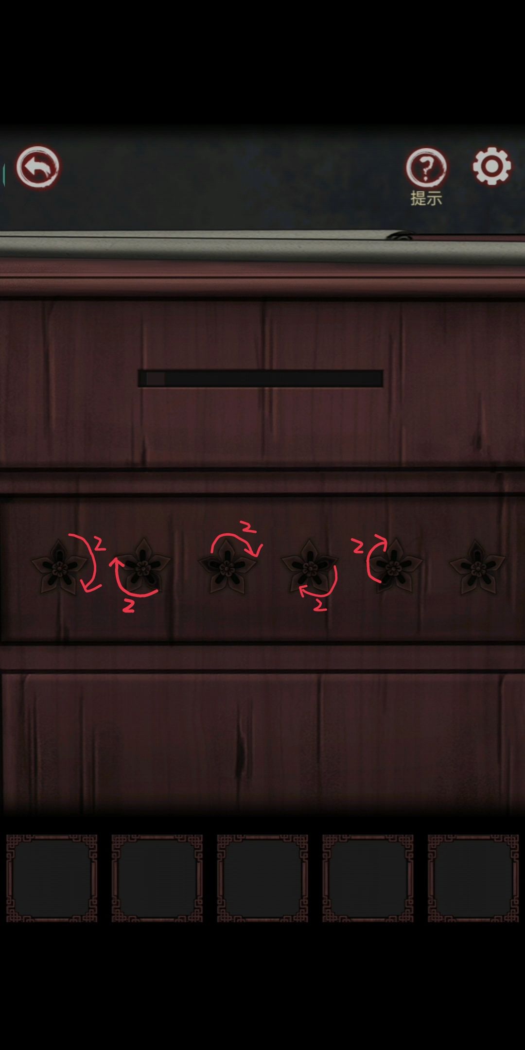 注:不管是我画的箭头还是提示中顺时针逆时针,都只是告诉你规律,帮助你确定下一朵花中黑色花瓣的位置,确定好了你点击花朵,让黑色花瓣移动到正确的地方就可以,不是要让他逆时针转动哦~