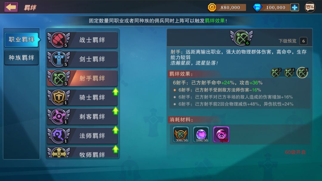 每个职业都拥有不同的羁绊效果,同职业人数越多效果越强!