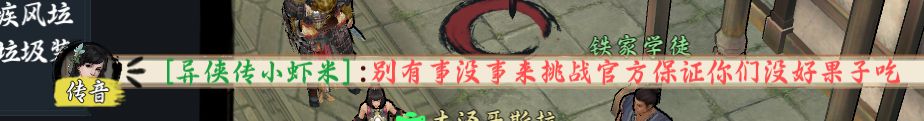 账号被封随后异侠传小虾米就在世界频道喝传音频道威胁道“别有事没事来挑战官方保证你们没有好果子吃!”从这句话当中大家应该都能体验到这游戏的托和内商非常的多了吧!