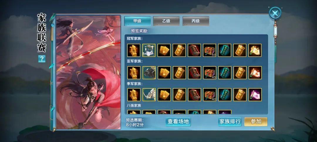 报名的联赛等级越高,奖励也越好。少侠可以根据自己家族的活跃人数情况,选择合适的联赛等级进行报名。