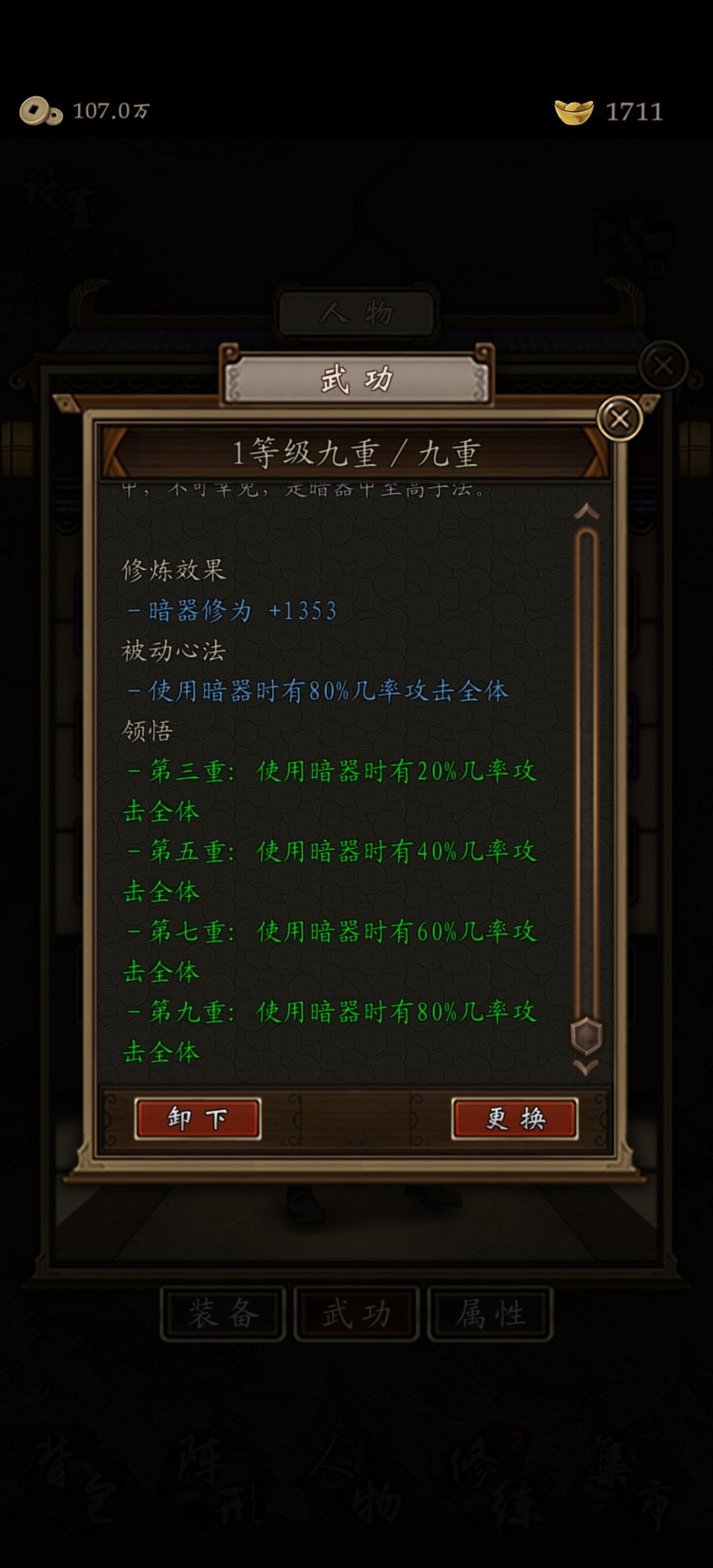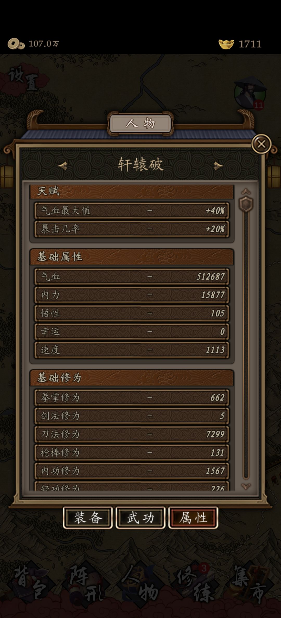 零氪微氪玩家建议,主修刀、剑、棍三选一就好,配合相应传说武件和相应功法好起来些,不然养不起。和尚和雪儿要一个就好,雪儿回血比和尚强(雪儿可以把疗伤直接换星光守护)(和尚的伤害高些,毕竟主修拳掌的)本体角色也是可以带其他角色技能的(其他角色一样可以带),除了特定技能比较难刷外。寒冰掌配合寒冰真劲,加满冰冻也不是很好,不建议走这个路线,不如:狮吼功等直接控制的技能好用。伏地绝+狂风可以把招架加到70%(最高好像就是75)配上金刚护体神功前排几乎很难死,前排建议都带。另外这游戏群体技能都很强 如:狮吼功、八卦刀法、万法归宗掌、落英剑法、五行掌毒心手等,还有四气技能配合一气技能这样最好(如1-2-3-4)(1-3-3-4),特别是一气多功技能都是神技 如:七星剑法、狂风迅雷刀、醉八仙拳(醉八仙是要强于狮吼功的)、疾风刺等这些都是破双盾神技。其他次要的看自己喜欢