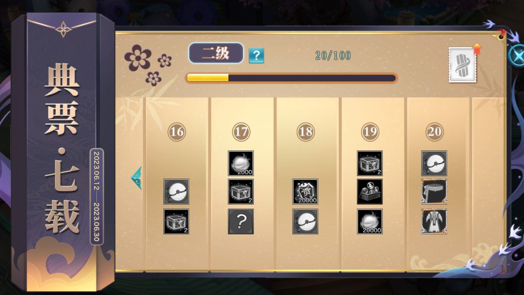 典票·七载将在6月12日-6月30日期间开启,少侠完成各类江湖活动收集典札,即可轻松解锁各项丰厚奖励!