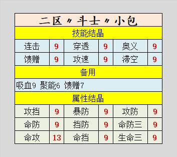 推荐属性结晶:攻挡、暴防、破攻、命攻、攻防、命防、暴攻III、破攻III、生命III。