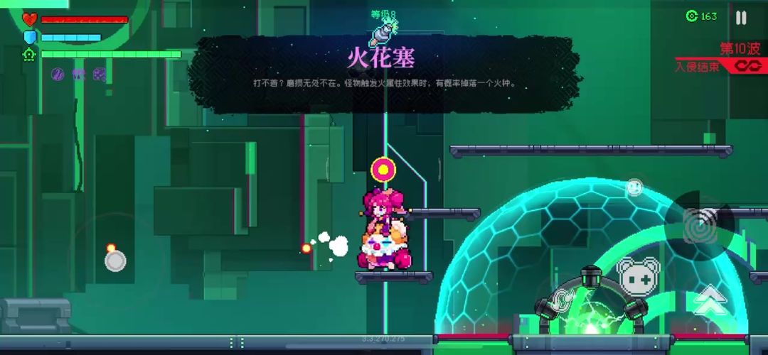 所以首先进图必须捡金色圆环,前期增加让怪物进入灼烧的机会,才能在第十关左右稳定触发火二的效果