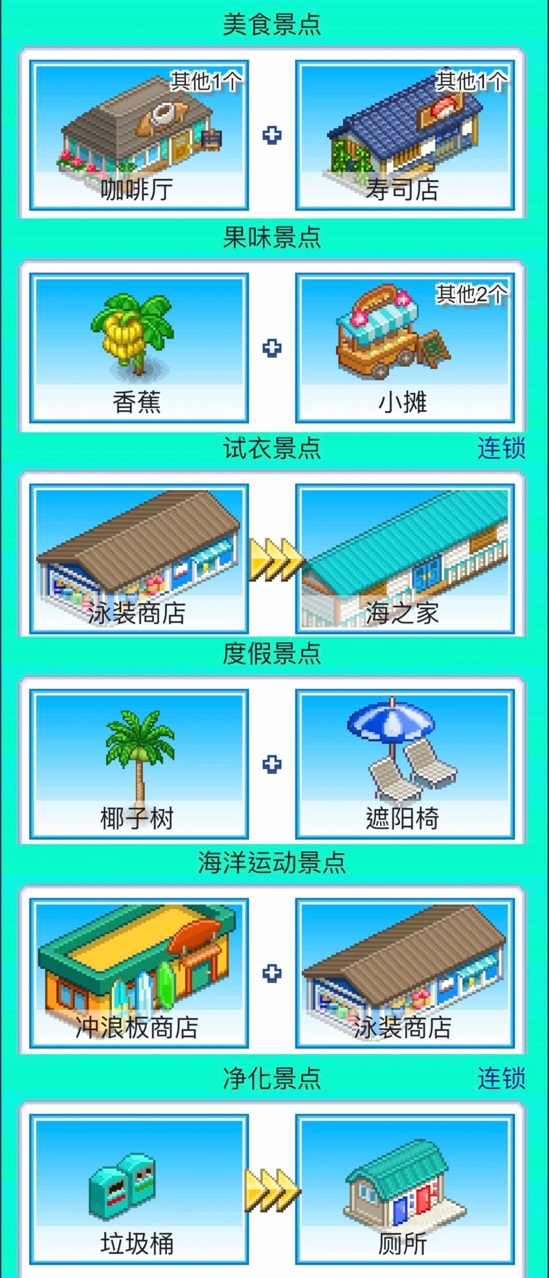 个人觉得酒店赚钱能力前期不是很好,又贵不用开那么多,多开别墅,然后堆相性建筑,有钱就升级别墅,提高单价。购物街美食街一定要建成,放在港口靠近的地方。环海公路时一定要有的,客人可以开小车车,节省通行时间。