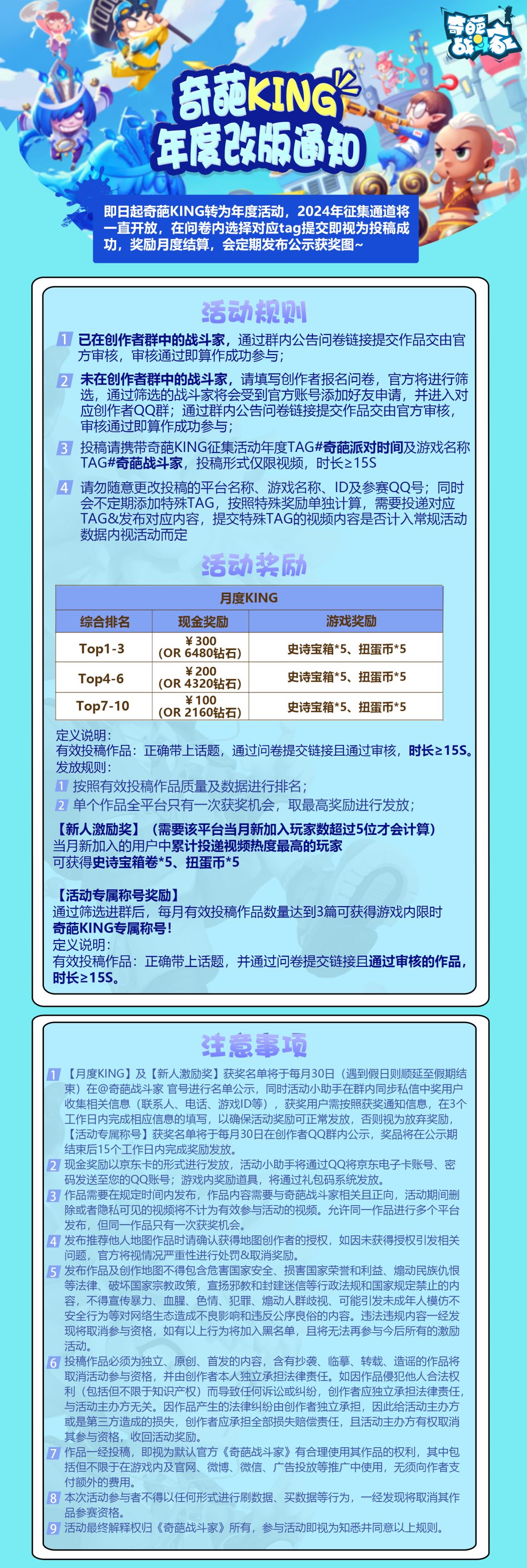 奇葩KING迎来年度改版,接下来将以月度为单位进行长期奖励结算,今年每时每刻发布视频都有机会获取京东卡和钻石奖励啦~