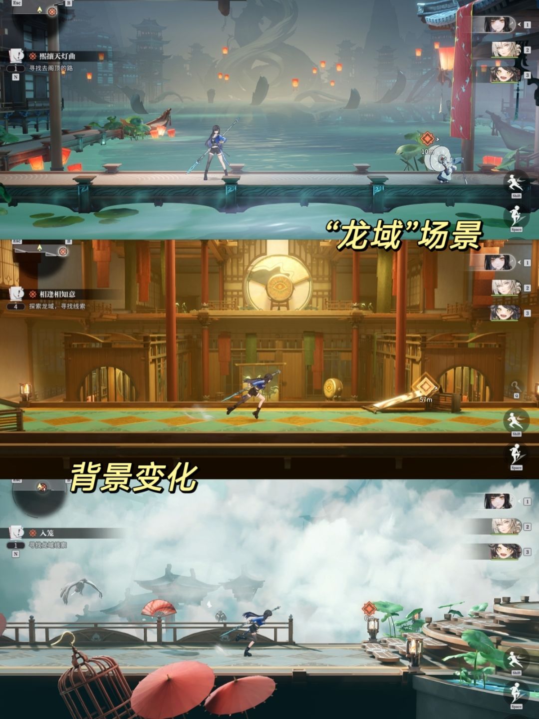 ✨由委托引入的副本“龙域”,根据故事也有相应的画面、背景元素调整,让场景简单的横版过关不那么单调。