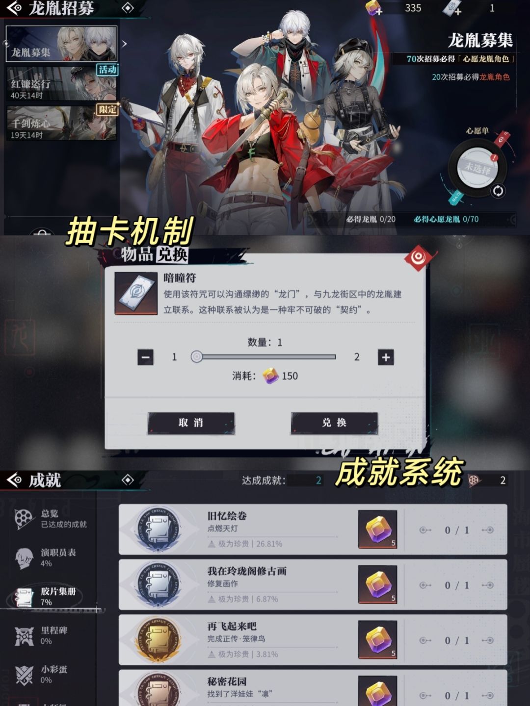 ✨人物培养方面,除了提高角色等级,还有“潮品”“龙咒”“胤痕”等系统,潮品能提升属性,套装可以激活额外效果。
