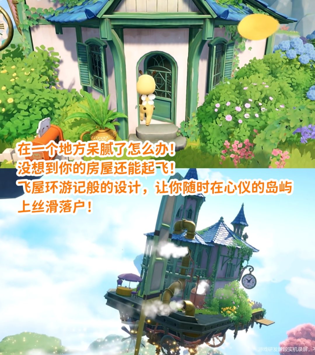 游戏背景发生在一个都是浮空岛的奇幻世界,除了可以开着飞行器和好友一起探索外,也可以使用漂浮伞凌空而行,更让人预想不到的是,你可以直接带着自己的房屋“原地起飞”,真·来一场说走就走不用打包行李的旅行吧!