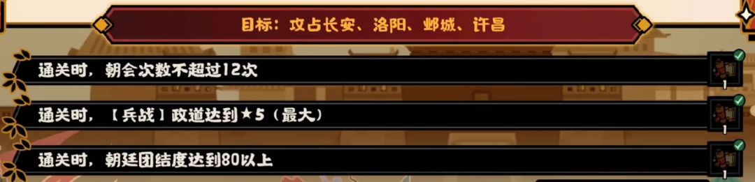 【汉之光文】金框成就需要你在《汉赵立业》挑战难度下完成所有的4个主线和额外目标,其中的难点是兵战和团结度的要求。