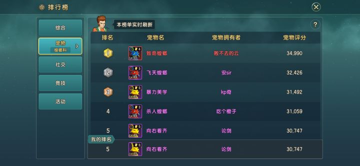 对于宠物来说呢,很多紫色宠物到了50级就可以变成红色,从而带来的属性大幅的提升。可以从排行榜上清晰的看到。
