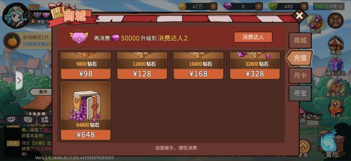 如题,天龙人直接62w砖石,萌新你648,64800砖石,还要玩的自己体会