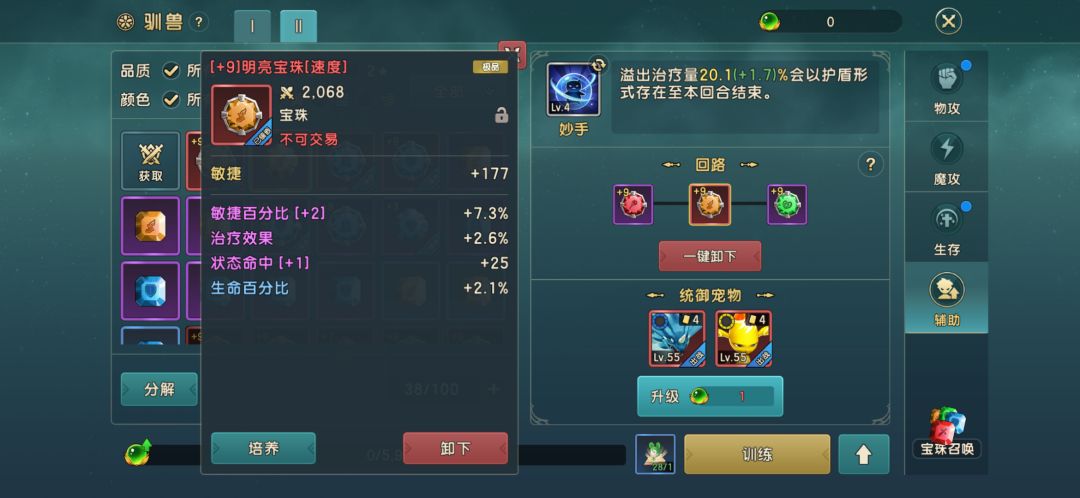 第三个呢就是宠物性格洗练不爱是直接加治疗效果的,然后智慧加模工也是一样。都可以嗯,另外休闲也是可以加的,因为很多虫的治疗技能里面都说明的是生命百分比,再加上魔攻百分比,再加一个固定数值组成它最后的加血量。