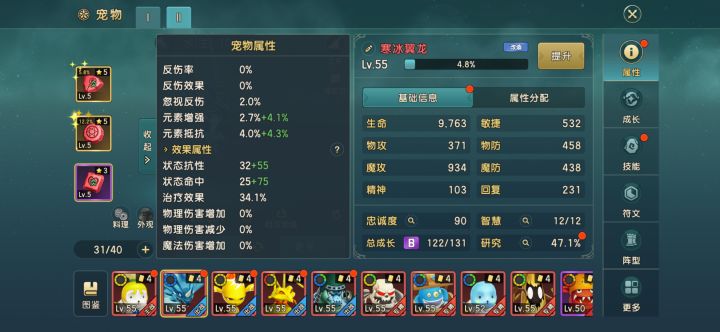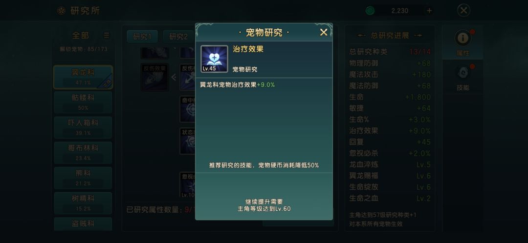 第4个呢就是宠物研究在这个研究所里面啊有一个治疗效果可以点,然后魔攻也可以点包括魔攻百分比