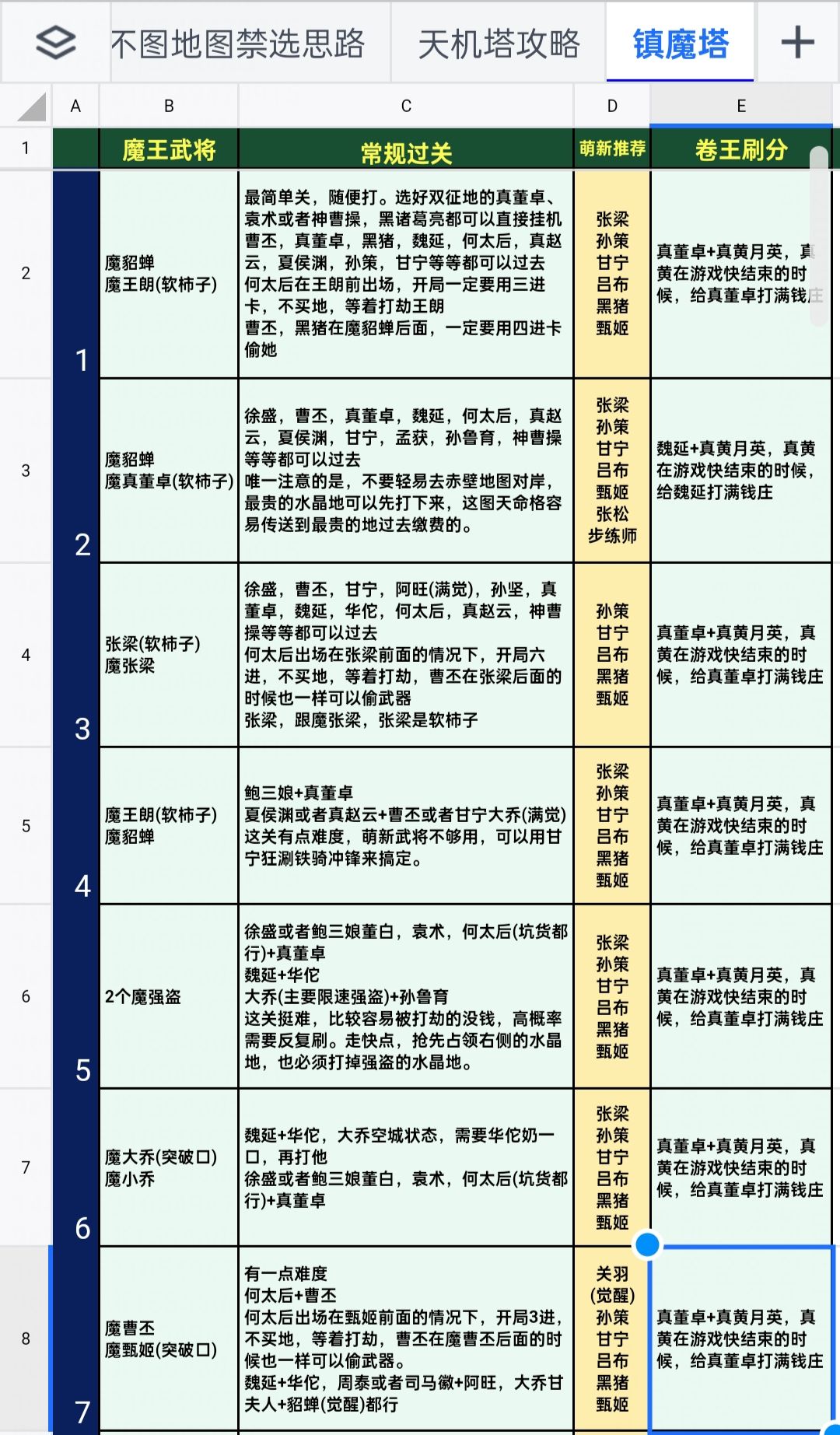 主贴天机塔48关之后,前面比较简单,而且有人写过攻略,我把他的攻略链接贴过来,也不知道为啥他写到70关就不更新了。这个攻略有详细的表格,表格文件可以点右边的截图放大,看的更清楚,需要查看细节可以加我...