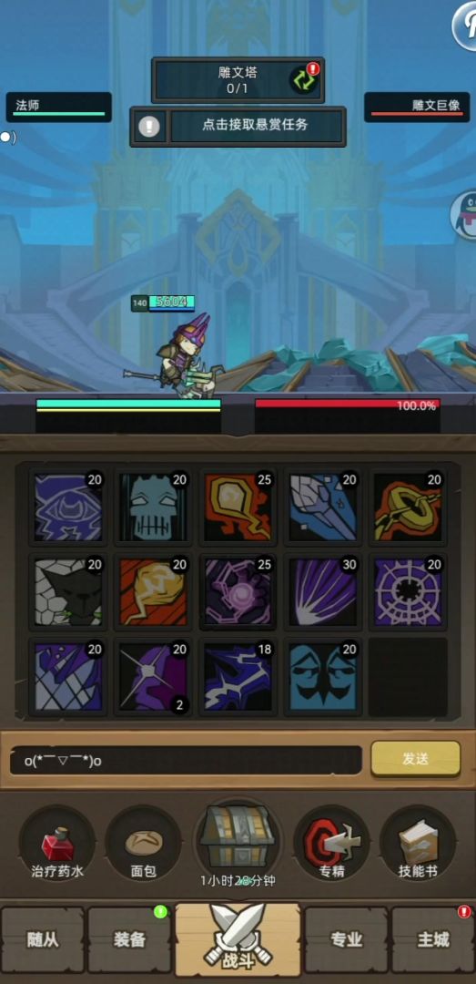 打完两个火元素后,你会发现,重新出现的“恶魔猎手”依旧被眩晕和减速,这时候再开启镜像技能全力输出,尽快秒掉他即可。补充,打不过可以吃药,冒险手册会让你做药剂的