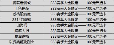 SS3赛季大金限定——100元严选卡(8份)