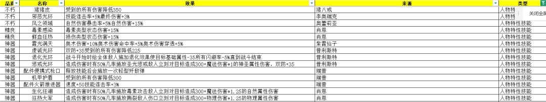 不算全的光环汇总