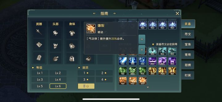 2装备选择武器灵光➕力量或者宝石匠,进阶不息或者峥嵘!词条物攻必杀!运动帽。帽子力量➕宝石匠。词条命中。进阶不朽!衣服推荐长服力量➕宝石匠人词条物防磨防忽视必杀进阶风暴之盾。鞋子皮鞋力量宝石匠词条洗生命敏捷忽视必杀。进阶逆光急速都行。戒指力量宝石匠词条物攻必杀进阶连打!耳饰力量宝石匠词条物防磨防忽视必杀进阶爆裂!翅膀优先选必杀伤害。其次是必杀或者物攻!天赋目前看不到自己根据暴击路线搭配!