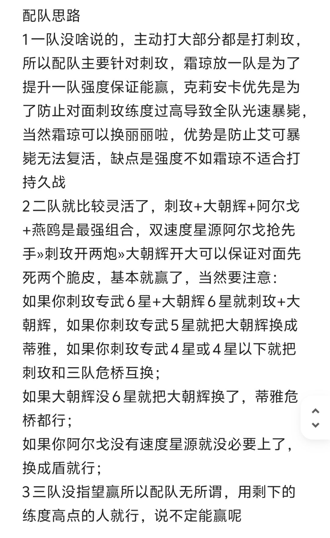 最后说明一下,我这个配队思路是针对普通玩家的,主要是我个人的一点想法,欢迎各位指出我思路的问题,也希望各位大佬氪佬别嘲讽我,毕竟我也没氪多少感受不到满星源的快感,谢谢。