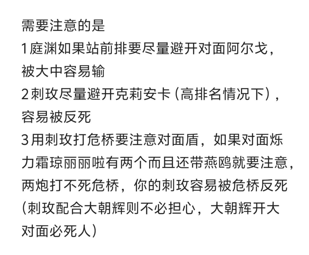 如果你没有霜琼可以上丽丽啦,如果你没有庭渊可以上刺玫(专武5星以上),如果都没有,那你就随便来吧,反正玩个开心。