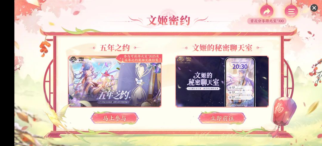 左边点击【马上参与】,做完任务后领取2025元宝和信笺
