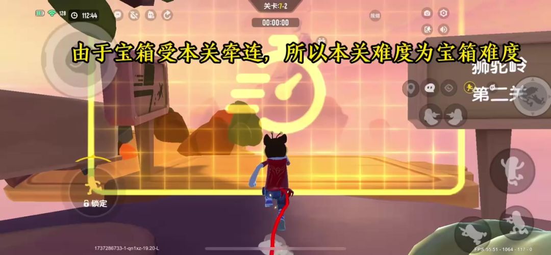 拿完7-2第一个宝箱继续闯关,看到竖直伸缩的柱子后,站上去被弹飞起来可以看到宝箱