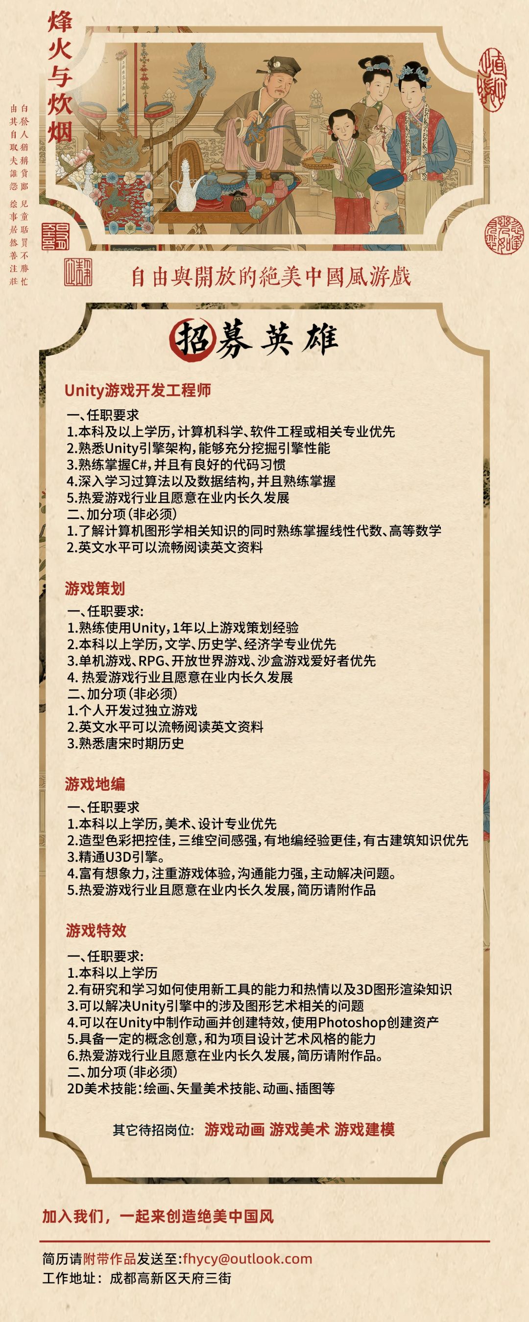 《烽火与炊烟》项目组开启招聘,广邀天下英雄,一起创造绝美国风