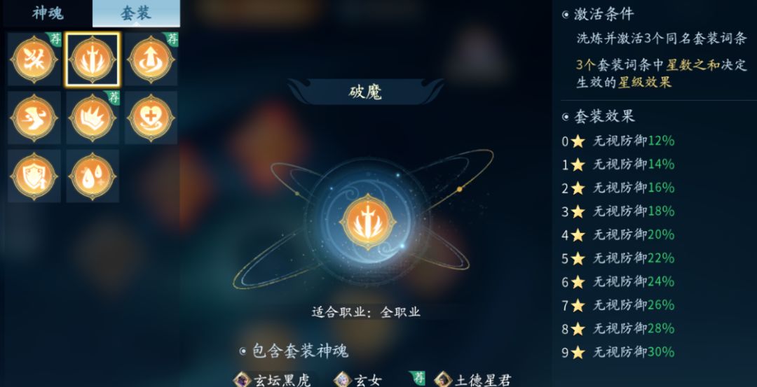 7:破魔,就像我那慈祥的父亲抽出他的神器七匹狼之一(腰带)边带变触发穿透效果,无视体内任何外来物的阻挡。一块无视防御%比的神魂,适用奕剑,清虚,金刚,当然玲珑可以用,但更推荐上面的重击神魂。