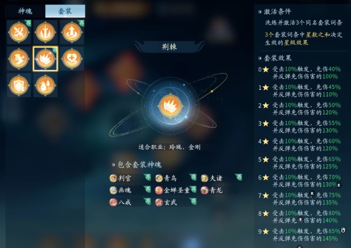 1:荆棘,作为金刚的专属神魂,搭配上自身的一个反伤效果,主打一个谁打自己就扎谁。如果有更高的追求,可以带三个盾的宝宝。可对敌人造成心理伤害,从此过上缺德人生,加上职业的特性,血量越低伤害越高,起手先让对手半血。在开启三盾。这个神魂只适用金刚,其他职业是没用太大用处的,不推荐其他职业使用