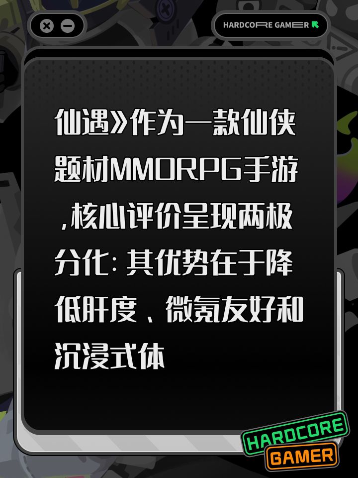 仙遇》作为一款仙侠题材MMORPG手游,核心评价呈现两极分化:其优势在于降低肝度、微氪友好和沉浸式体验,但存在优化不足、战力差距大等短板。 以下是具体分析: