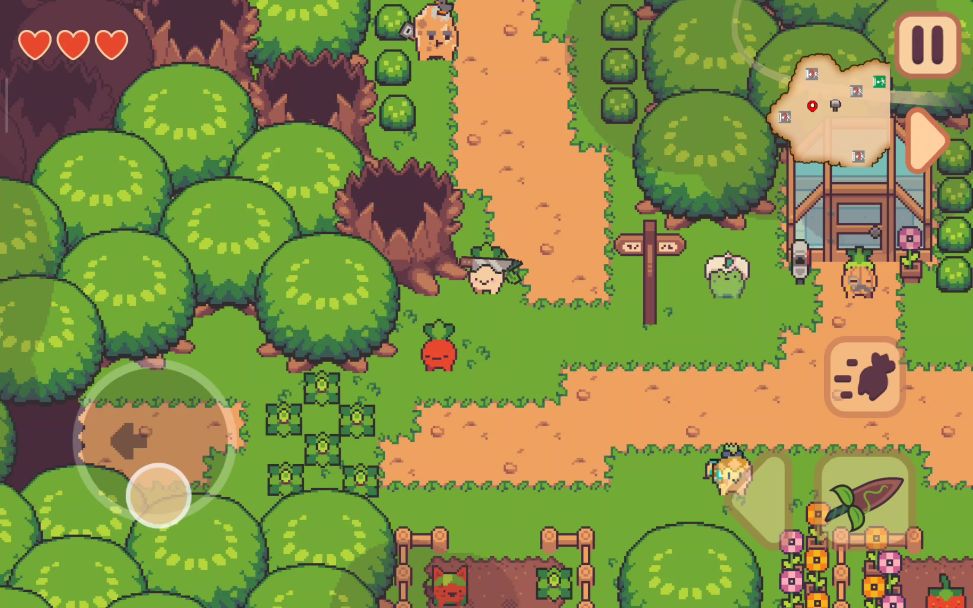 游戏画面是简单又可爱的像素风格,蔬菜水果们摇摇晃晃,大头菜走路“啪叽啪叽”的声音超萌,还有像水泡咕嘟咕嘟的互动音效,十分有趣。背景音乐大多轻松愉快,像冰箱里的《Bill Collectors》和最终决战的《Turnip Boy Go!》都超带感,在网易云就能搜到。无论是NPC、怪物还是boss,画风始终在线,能很好地带动玩家情绪。