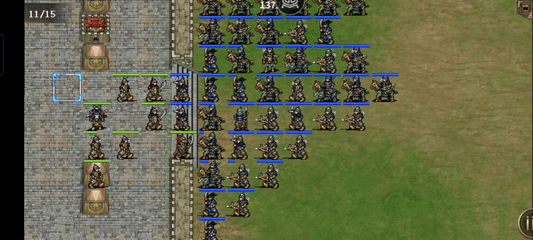 中路下路开局退到城池里面去 这样子敌军会卡进楼梯上只有三个人可以打到刀兵,完全扛的下来(低周可以高周死定了)