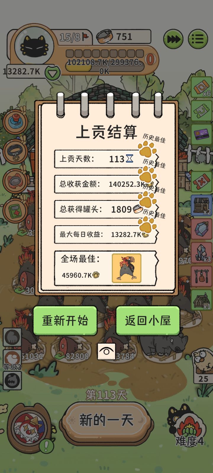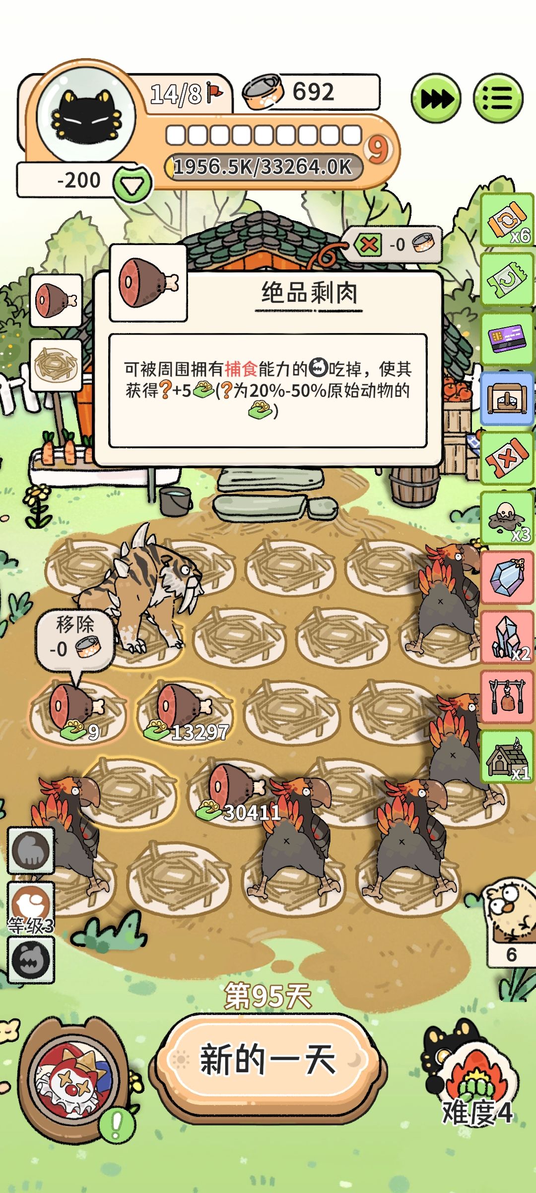 接下来找四不像,用罐头控制孔雀数量,淘汰低产费的孔雀,这一步能轻松到99000。(日均轻松过万)