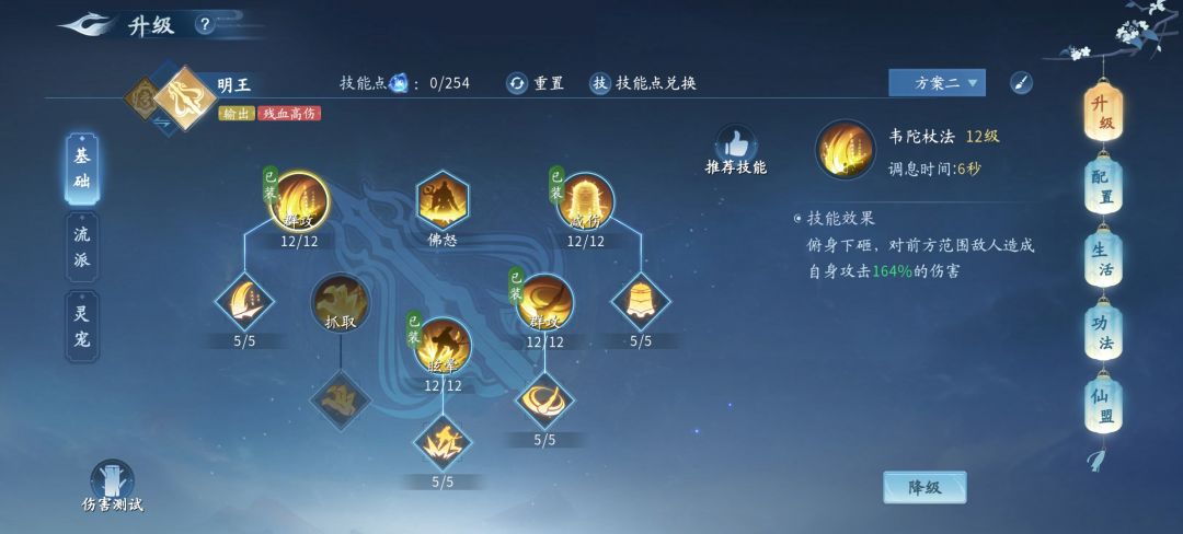明王流需平衡攻击与防御,菩提流优先防御和生命。