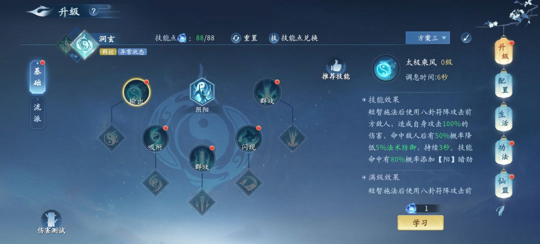 打副本的话和pvp技能大同小异 选择 洞玄流派只需要把『太极乘风』换成『两仪缚影』即可精准控场 配合队友能够高效快速的通关副本 增益效果非常明显