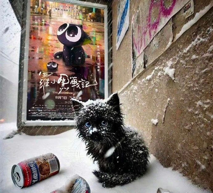 原型猫已经被扔掉了,还是在一个大雪纷飞的寒冷冬季。
