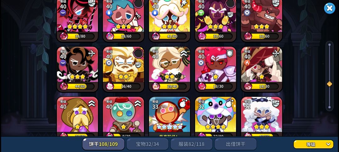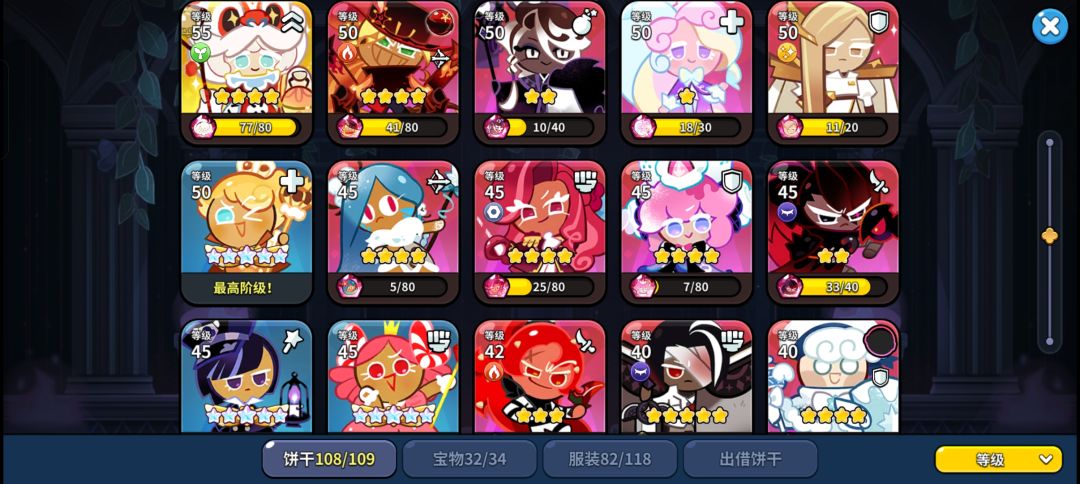 从开服第一天就开始玩 中间几乎是一天没拉下的在玩 这样的收集度和星级有点低了 唉 要不要氪金呢?