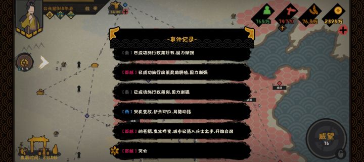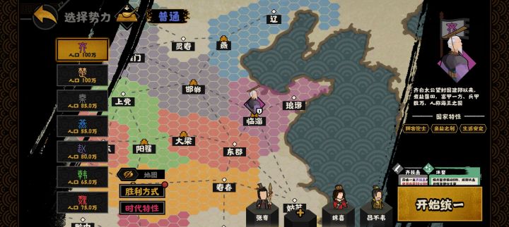 剧本春秋战国 开局选魏国,魏国地方多,位置好,士子可以产的多,然后拿下齐国首都,拿下楚国首都,齐楚可以留一城,灭亡越国,