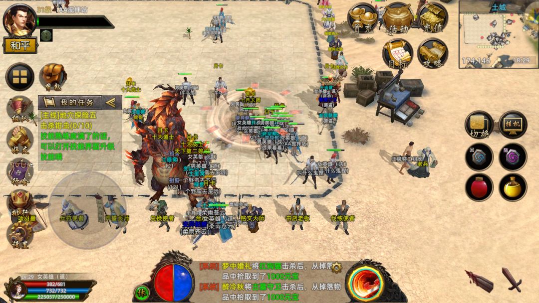 合击系统双职业自由搭配,如战士+法师的“烈焰斩+冰霜咆哮”可清屏,道士+战士的“毒雾+狂暴斩”适合持久战。40级解锁合击技,如战士主职的“万钧一击”带眩晕效果,法师主职的“末日审判”为全屏AOE。经典玩法保留