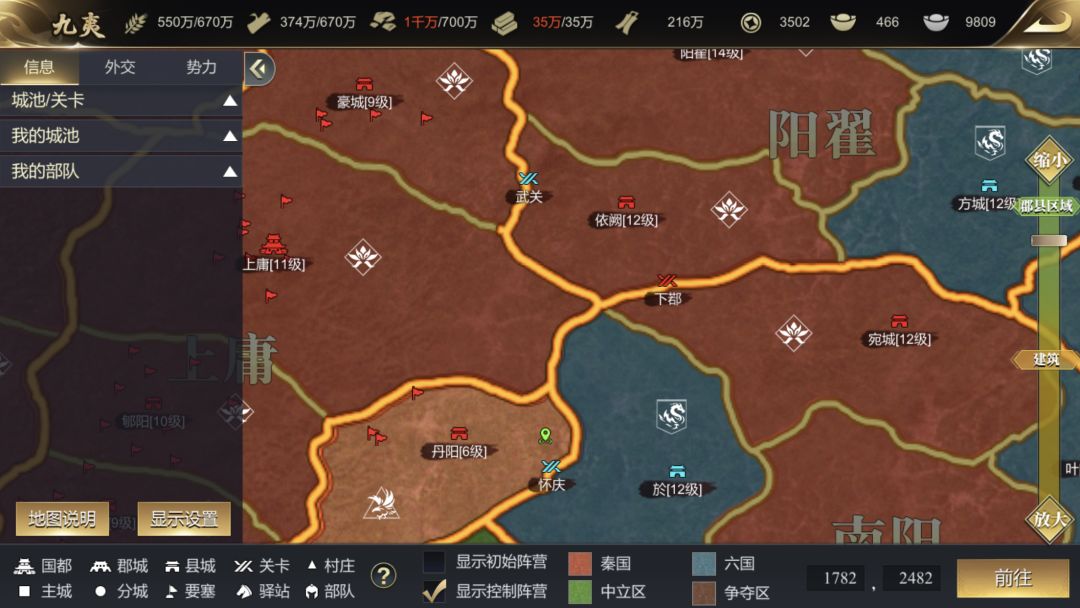 9.1 经过一夜鏖战,上路率先报捷,六国攻克泫氏,剑指平都;中路南阳军也推进至怀庆门口并成功构建了阵地,上午9:30,中路几乎同时夺下怀庆和武关,秦军奋起反击欲夺回关卡未果。下午15点,下路秦军支援中路,猛攻怀庆,怀庆坚守了3小时后率先易主,南阳兵团退守下鄀,很快武关跟着也丢失,眼看依阙下鄀阵地即将腹背受敌,六国果断放弃阵地,退守郩塞野王,秦国集中兵力主攻郩塞,野王援军及时赶来杀退敌军并反推至方城。深夜将至,上路六国进攻顺利,即将突破平都时秦国果断开始国都保护,六国不得已退守上党。