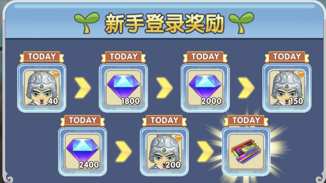 5步新人限定探索有可观的额外奖励和出孙策之余还可以碰运气抽廖化、张昭等0.1%概率的强力武将!