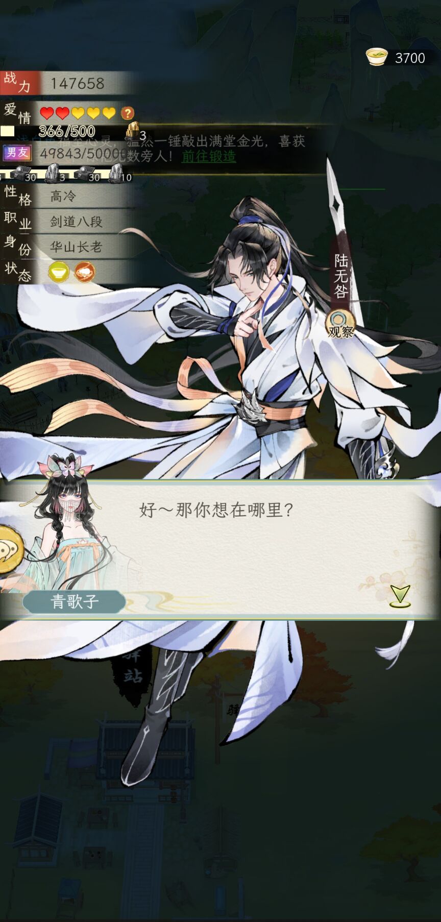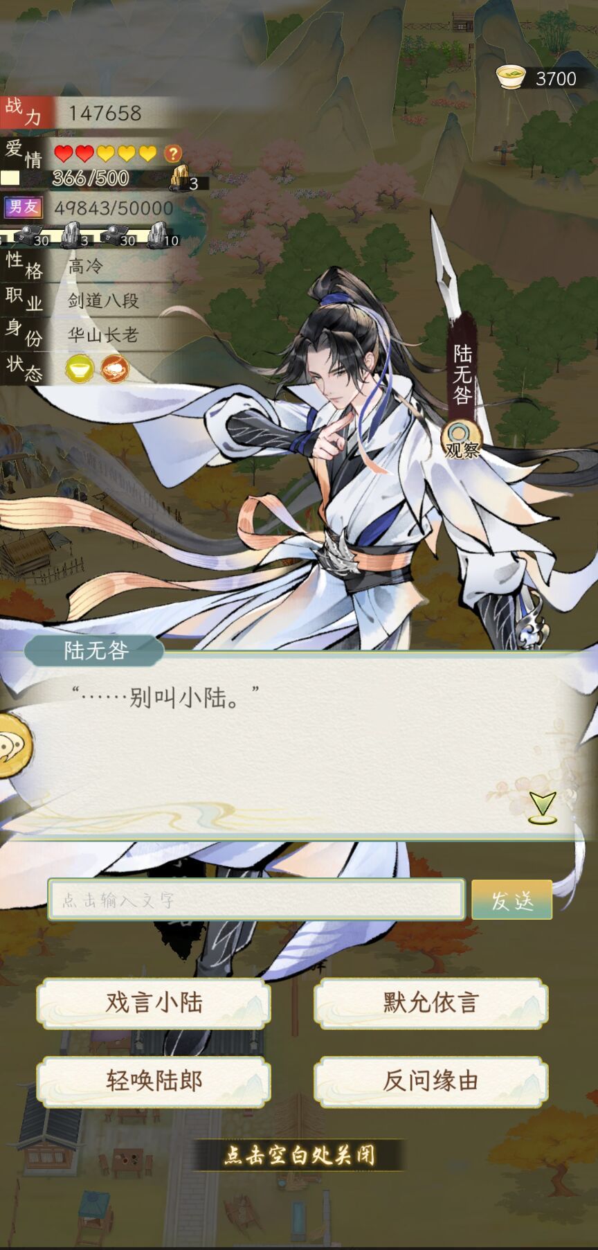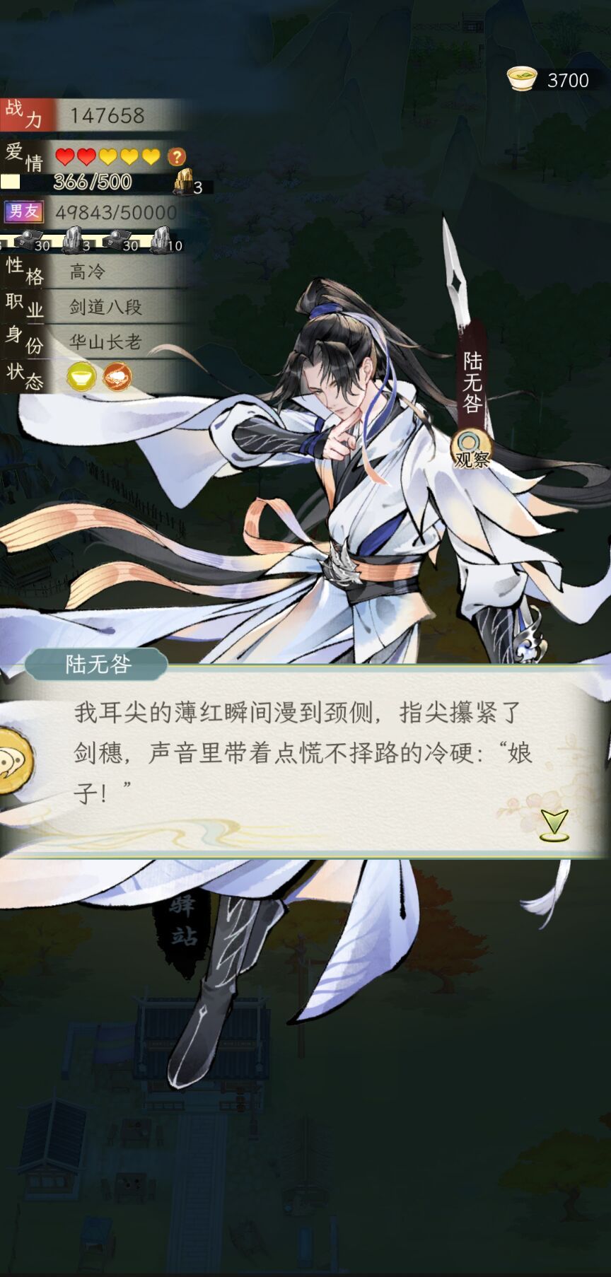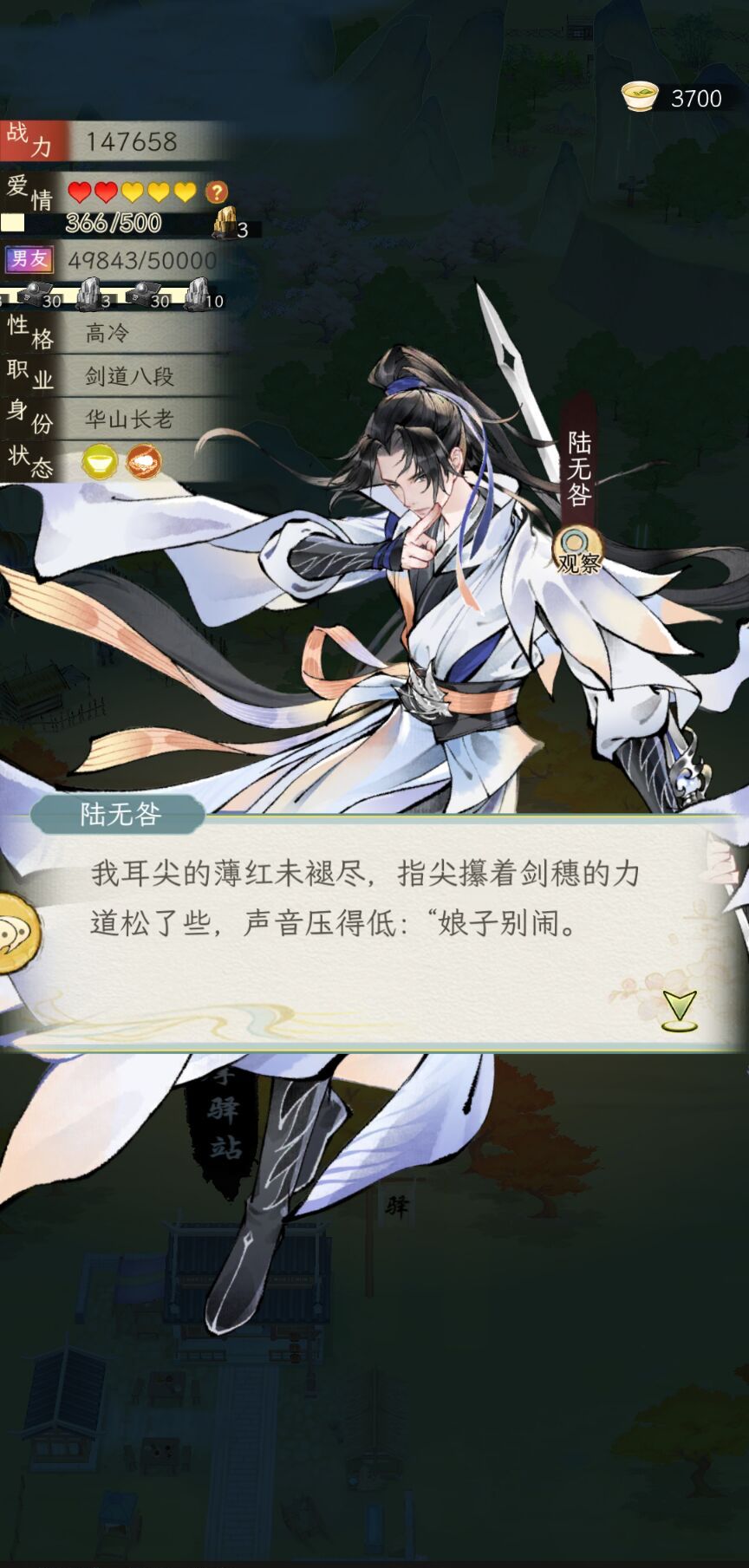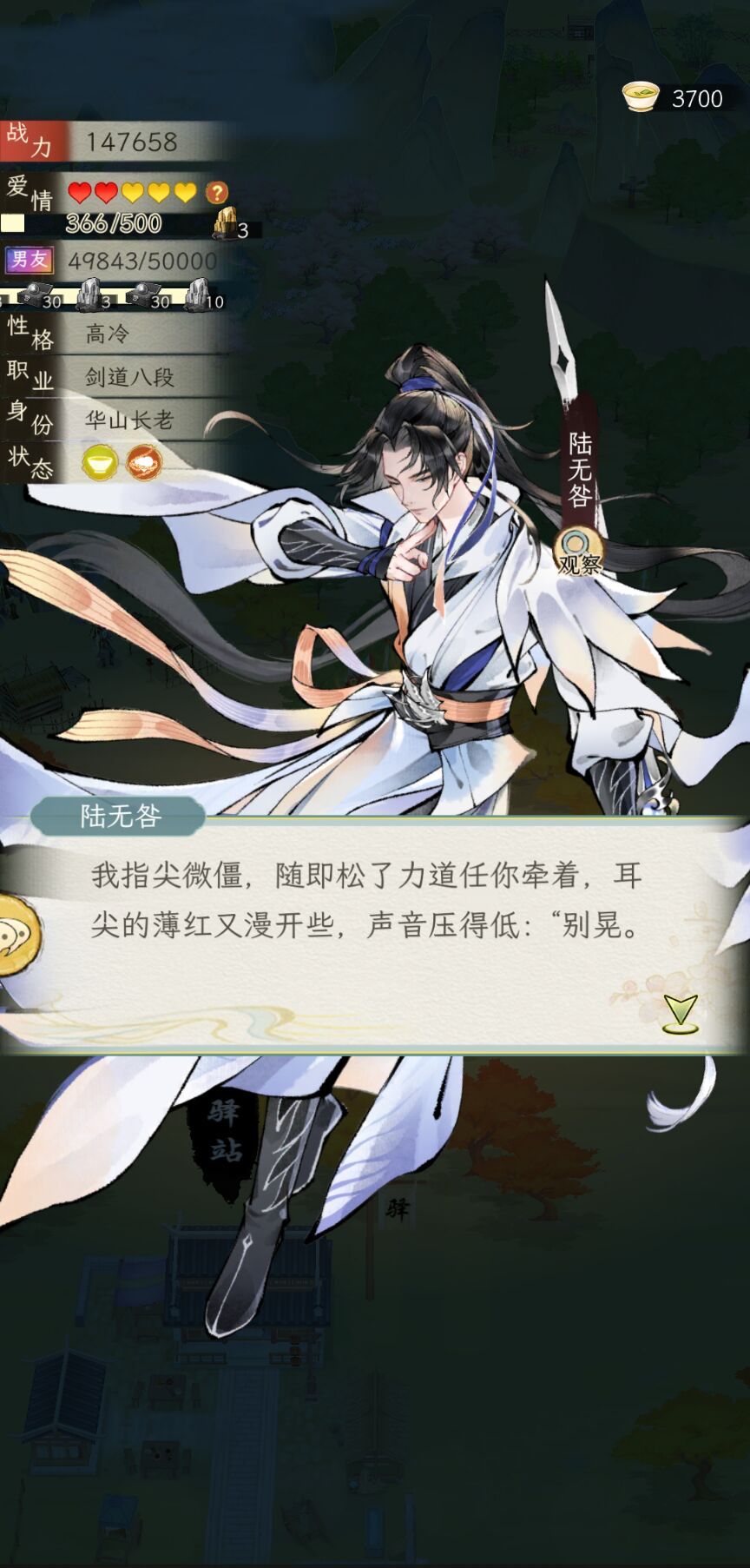 在书信的基础上加入了一个立绘的智能体,两边对话不互通,智能体不需要调,亲密度够高自带好感,高冷AI不再不解风情,可以打直球。同行的时候还是不错的,可以顺便调戏一下对象。但是难点是那些好感不够的,非常有边界感,根本撩不动,暂时是这样,连唐隽忘都难撩,跟他暧昧一下一直跟我提关于六扇门和唐门的恩怨(我入的六扇门)。然后,和书信比起来,智能体有时还会自带场景动作,但是有时AI味很重,一眼DeepSeek文风,感觉可以再优化一下,现在有了两种AI玩法,看大家更喜欢书信还是立绘的智能体。