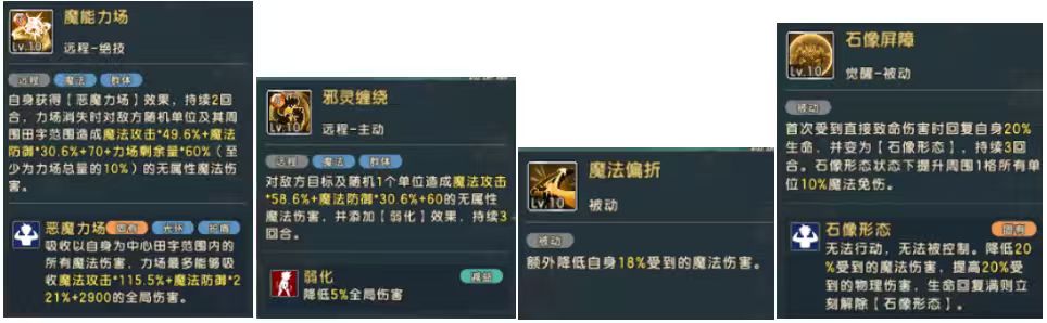 4.觉醒被动:被打出致命伤害时可保留石像状态,并位周围1格单位降低10%魔法伤害。