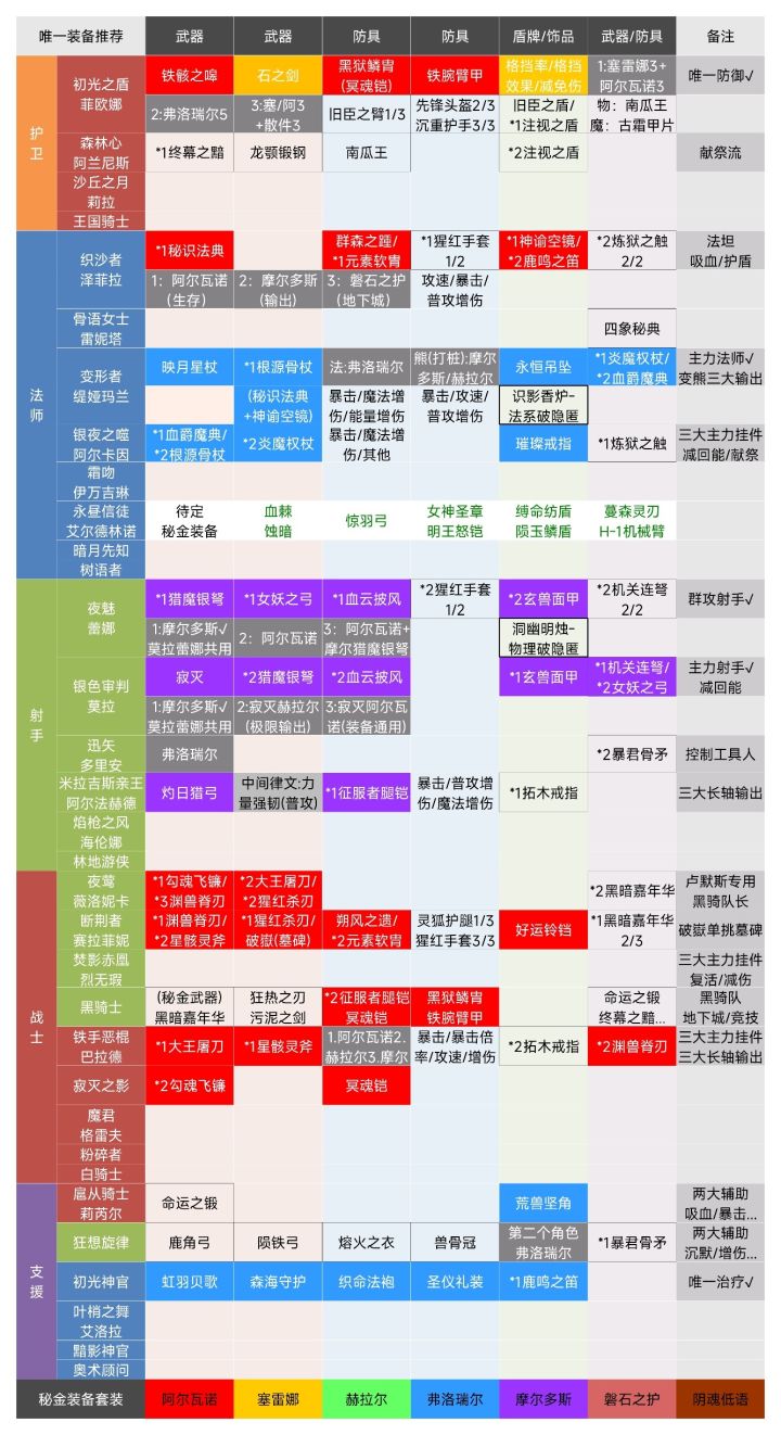 图1——全职业唯一装备、秘金装备,基础英雄推荐、套装推荐!(配得上穿唯一秘金装备的就是主力阵容。)(装备及套装搭配,欢迎各位大佬给出指导意见!)