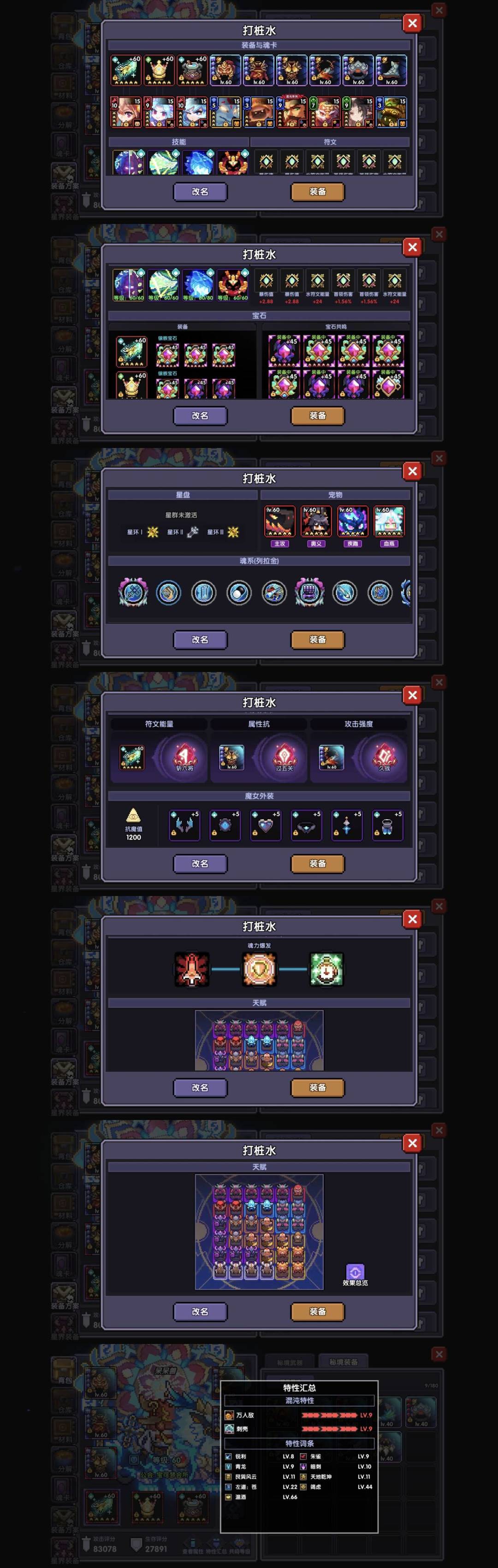 ⑤攻速:面板1.5,实战2.5,紫技能提供40%攻速,天赋乌萨提供27%,武器自带1.4,宠物羁绊提供0.15,什不都不用堆即可轻松达标
