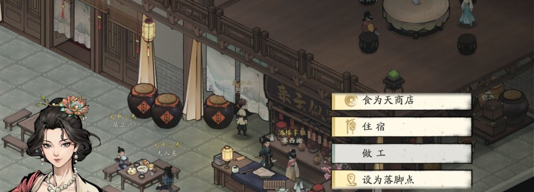 解锁一个地点先去酒楼,扬州(26,52,0),【做工】可以快速消耗精力,【设为落脚点】可以战斗失败后传送至此